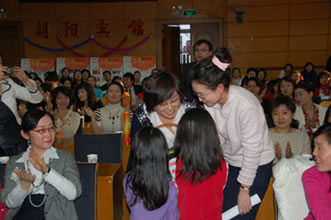 兩個可愛的小朋友獻花給米春梅阿姨表示祝福和感謝