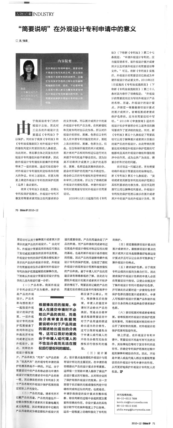 《China IP》:“簡要說明”在外觀設計專利申請中的意義