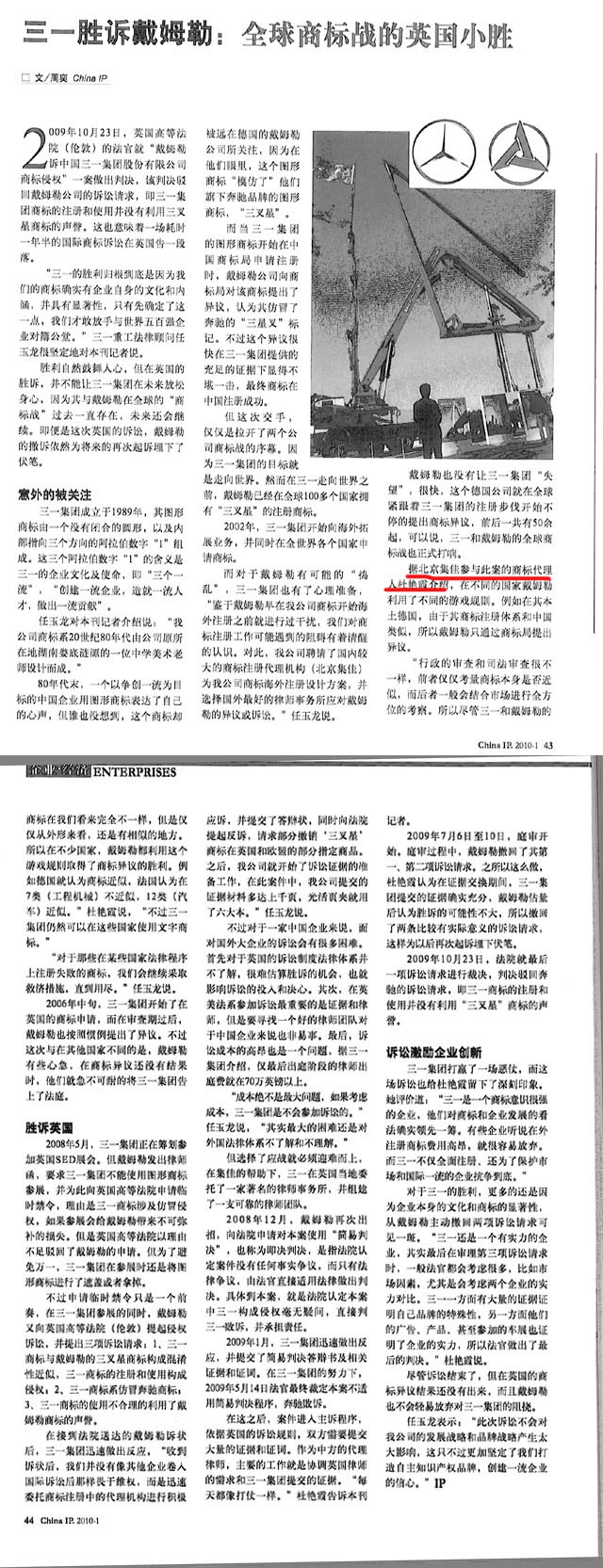 《China IP》:三一勝訴戴姆勒:全球商標戰的英國小勝