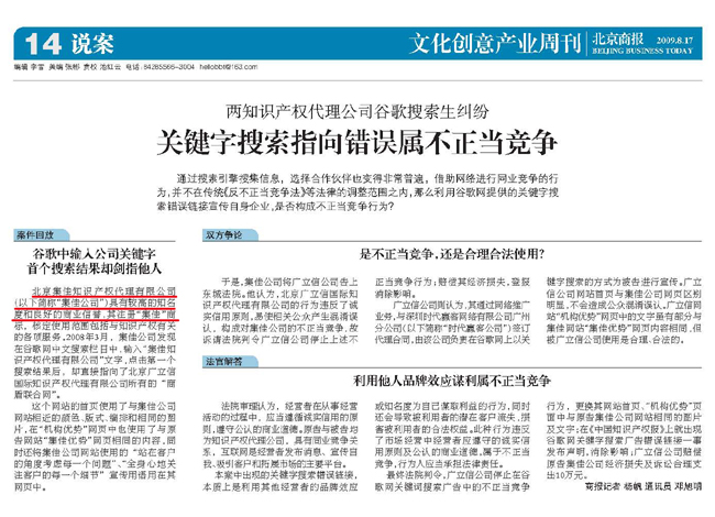 《北京商報》:關鍵詞搜索指向錯誤屬不正當競爭