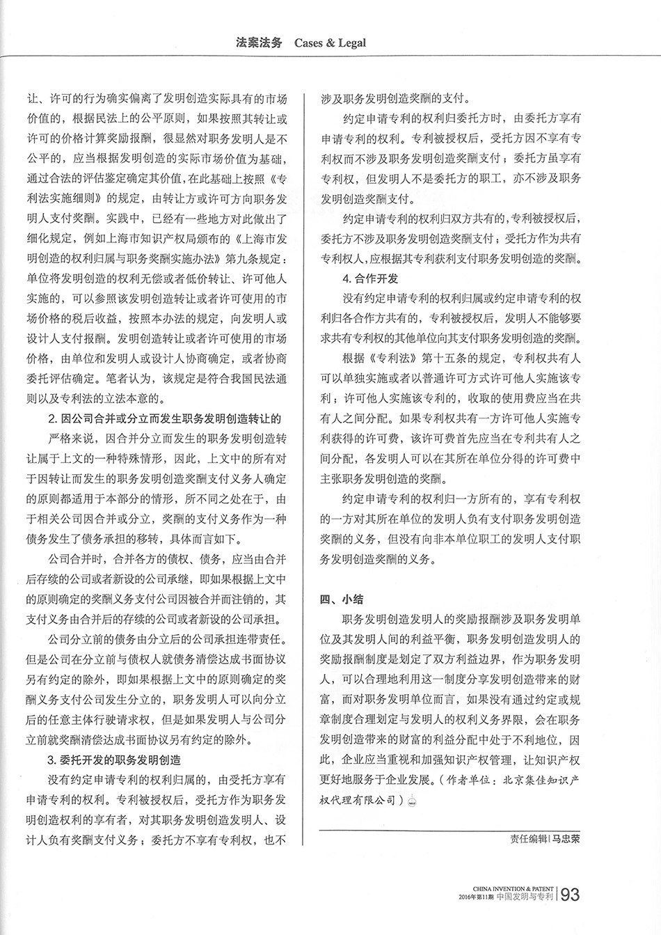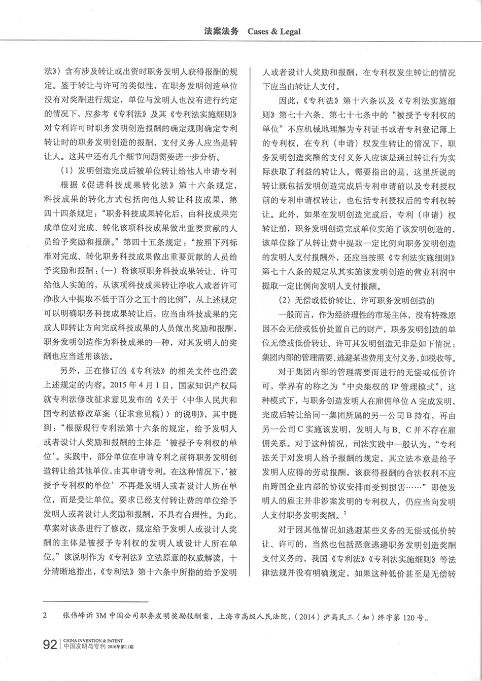 集佳文章《淺談職務發明報酬獎勵的支付義務人的確定》在《中國發明與專利》發表
