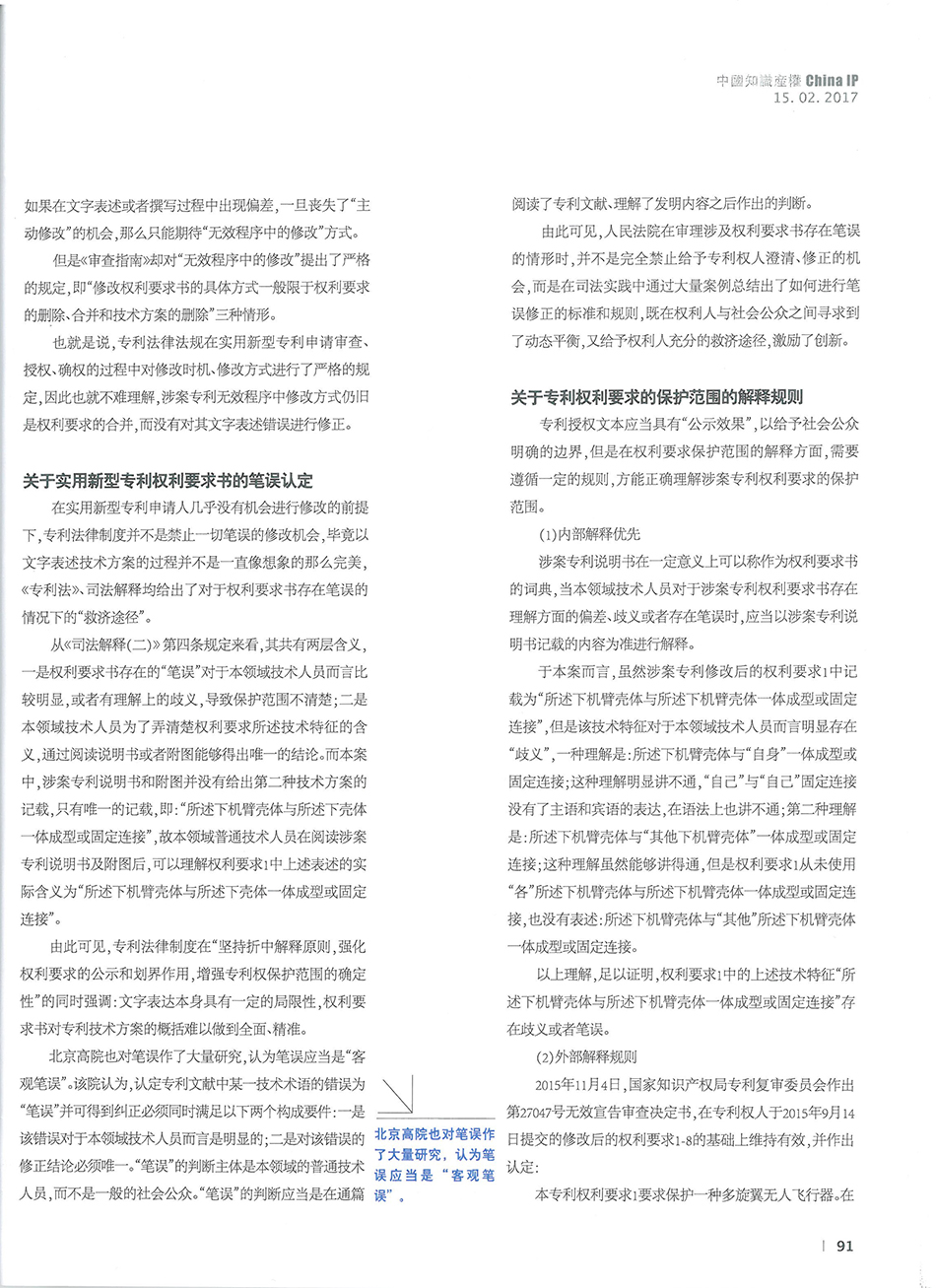 集佳文章《權利要求存在“筆誤”等瑕疵的修正原則》在《中國知識產權》發表