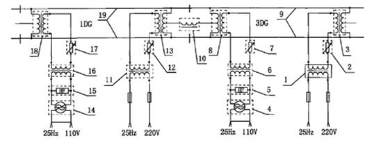 參見圖1所示,示出了權(quán)利要求1所要求保護(hù)的技術(shù)方案的示意圖,其中1代表安全型回流電抗器,2代表扼流變壓器,安全型回流電抗器串聯(lián)連接在設(shè)置于機(jī)械絕緣節(jié)兩端的相鄰所述扼流變壓器的橫連中心線處,設(shè)置安全型回流電抗器的目的是保證音頻制式軌道電路的斷軌檢查。