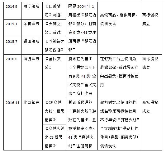 筆者也注意到,在一系列涉及游戲的商標侵權(quán)案件中,法院大多認定侵權(quán)成立。但這些案件也存在一個共性,即在先商標權(quán)人同時也是在先游戲的開發(fā)者或運營者。即便不考慮在先注冊商標,在先游戲也可以通過主張知名商品特有名稱的反法仿冒條款獲得救濟。本文附表三總結(jié)了原告具有在先作品權(quán)利人和在先商標注冊人雙重身份的案例。