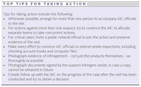 While administrative raids are a popular anti-counterfeiting tool, ensuring that they work smoothly and efficiently is another matter. This could well hinge on the rights holder’s relationship with the local administration for industry and commerce.
