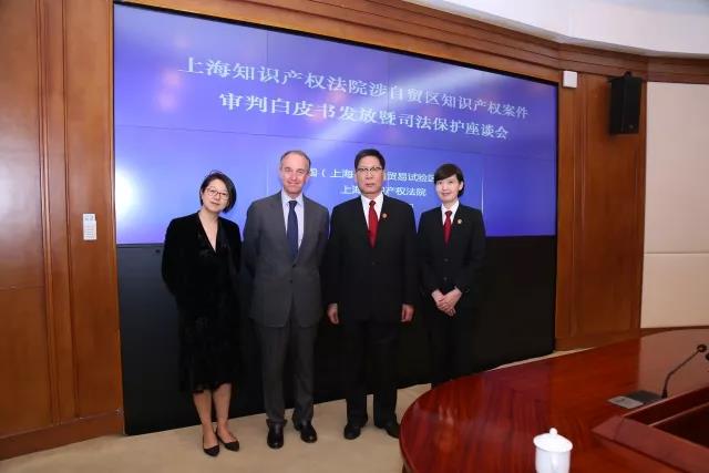 4月20日,上海知識產(chǎn)權(quán)法院與中國(上海)自由貿(mào)易試驗區(qū)管委會聯(lián)合召開涉自貿(mào)區(qū)知識產(chǎn)權(quán)案件審判白皮書發(fā)布暨司法保護(hù)座談會。上海市高級人民法院副院長張斌、浦東新區(qū)副區(qū)長王靖、上海知識產(chǎn)權(quán)法院院長王秋良、浦東新區(qū)知識產(chǎn)權(quán)局局長林本初出席,集佳侯玉靜律師、黃鶯律師陪同拉菲羅斯柴爾德集團(tuán)CEO Prats先生、中國市場部經(jīng)理宋萍經(jīng)理參加,與來自十余家知名企業(yè)的代表、權(quán)威媒體共同見證了白皮書的發(fā)布,并應(yīng)邀出席司法保護(hù)座談會。