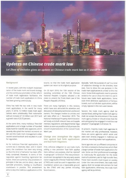 在年會上,趙雷律師與世界各國的知識產(chǎn)權(quán)界同仁探討了當(dāng)前熱點話題和商標(biāo)發(fā)展趨勢,同時也向參會代表分享了集佳近年來在國內(nèi)商標(biāo)領(lǐng)域及境外商標(biāo)實踐中取得的成績和獲得的經(jīng)驗,并與很多國家的代表建立了廣泛友好的業(yè)務(wù)聯(lián)系。會議期間,趙雷律師應(yīng)邀撰寫的文章《Updates on Chinese trade mark law》在年會專刊《ECTA Daily》發(fā)表,受到了業(yè)界同仁的好評。