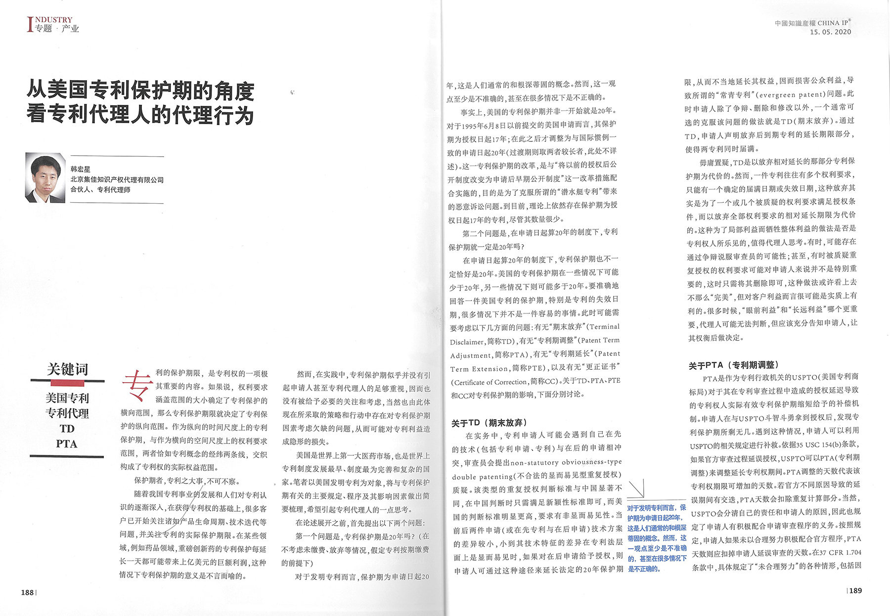 集佳文章《從美國專利保護期的角度看專利代理人的代理行為》在《中國知識產(chǎn)權》發(fā)表