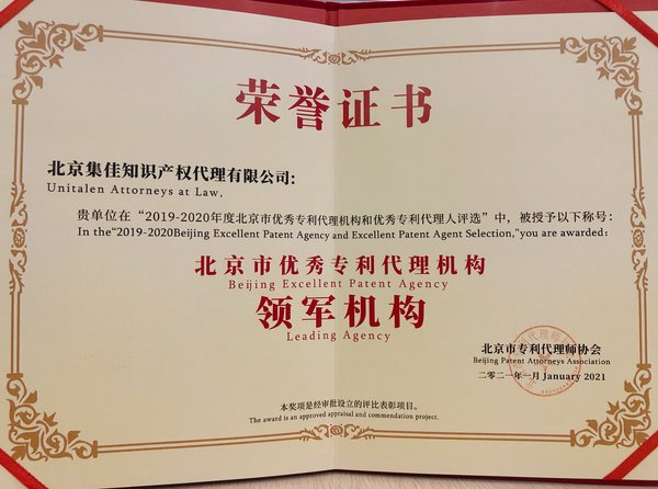 近日,北京市專利代理師協會公布了2019-2020年度北京市優秀專利代理機構和優秀專利代理師評選結果。集佳再度被評為“北京市優秀專利代理機構(領軍機構)”;同時,專利代理師薛晨光榮膺2019-2020年度北京市優秀專利代理師“杰出代理師”稱號。