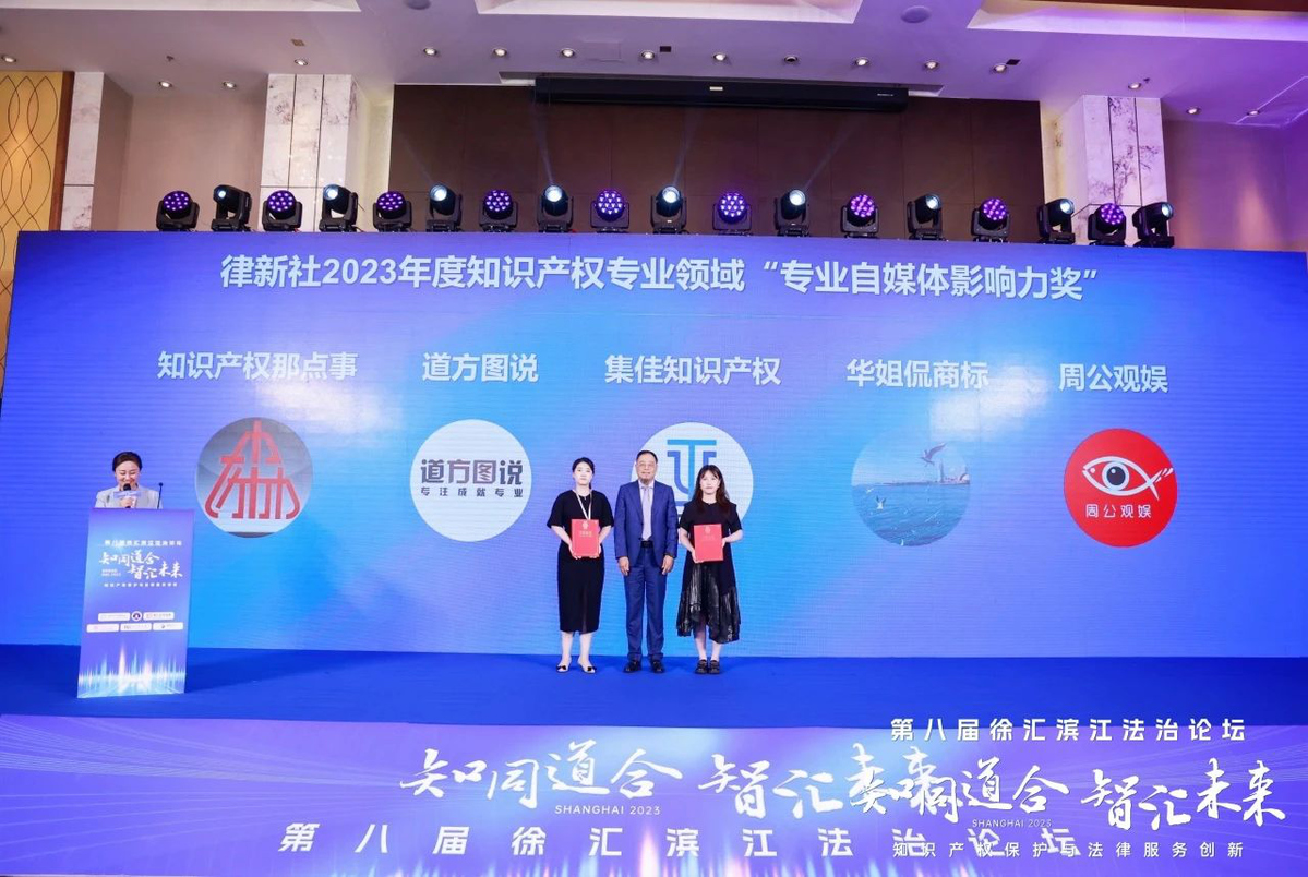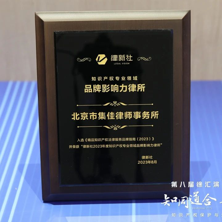 論壇上,主辦方律新社首次發布了《精品知識產權法律服務品牌指南(2023)》,并在申報與調研的基礎上,綜合專家評審會、同行評價、客戶評價等多方信息,根據專業服務及品牌表現,隆重頒發律新社2023年度知識產權專業領域“品牌影響力律所”和“品牌之星”律師榮譽。北京市集佳律師事務所憑借卓越的綜合實力和豐富的訴訟經驗入選“品牌影響力律所”榜單,集佳律所主任、合伙人李永波律師與合伙人閆春德律師被授予“實力律師”榮譽稱號,合伙人侯玉靜律師被授予“匠心律師”榮譽稱號,“集佳知識產權”公眾號獲評“專業自媒體影響力獎”。