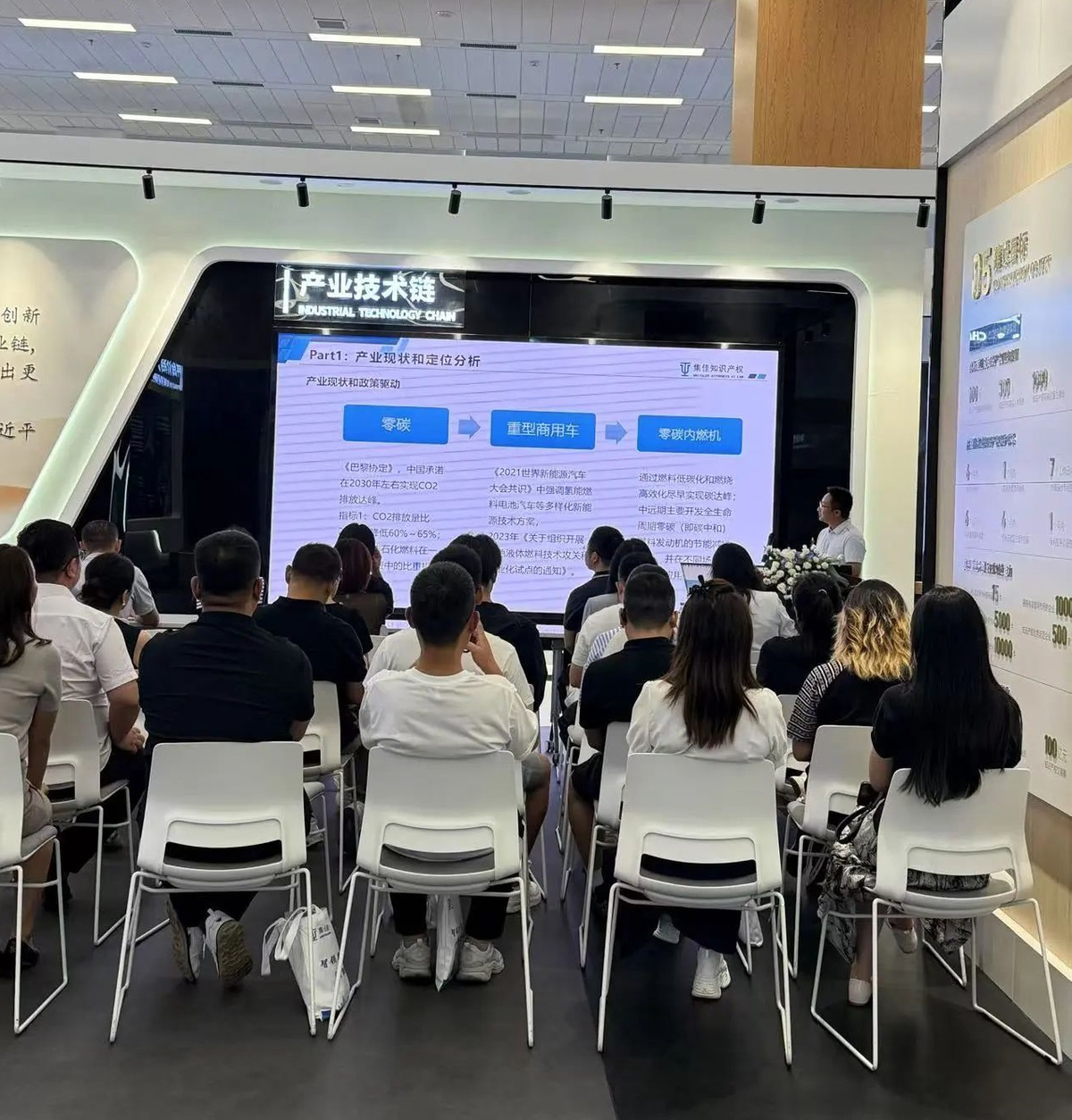 集佳項目負責人魏丹介紹吉林省重型商用車零碳內燃機產業專利導航成果(上圖,右圖)